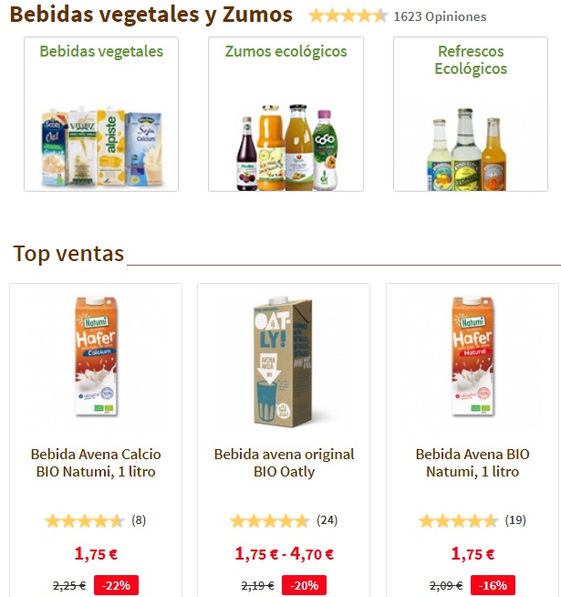 Veamos este ejemplo de la tienda online Planeta Huerto. Esta es su página de la categoría «Bebidas vegetales y zumos»